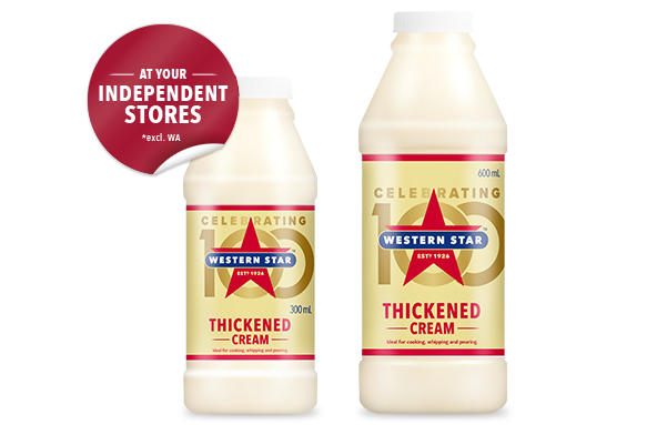 Western Star Thickened Cream is a rich, smooth and versatile kitchen essential. Made from Australian milk in Codben, Western Victoria. It is ideal for whipping, pouring or cooking, adding a creamy touch to everything from pavlovas to pasta sauces.