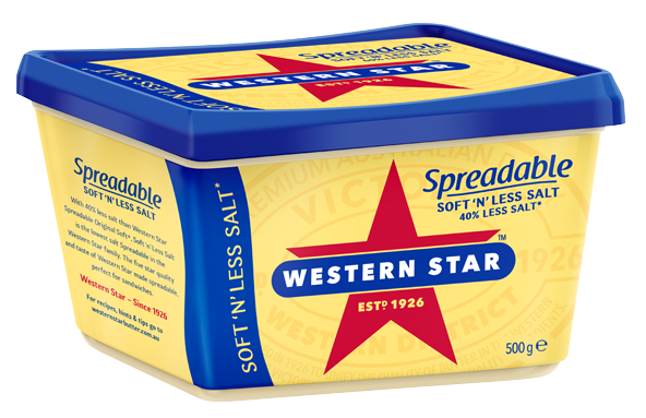 Our lowest salt spreadable with 40% less salt than Western Star Spreadable Original*
